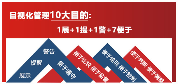 | 整潔、規范、安全、有序的生產環境。標示管理界限,標明正常與異常的定量管理連界限,使之一目了然。 |